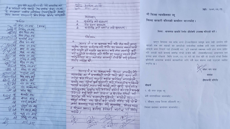 कार्यालय भवन निर्माण कार्य सुरु गर्दा स्थानीय तथा टोलबासीसंग सरकारी वकिल कार्यालयले कुनै समन्वय नगरेको टोलबासीले गुनासो गरेका छन् । हालसम्म प्रयोग गर्दै आएको बाटो भवन निर्माण कार्यबाट भत्किएर टोलबासीलाई आवागमन गर्न असर परेको माथिल्लो थाप्ले टोलबासीको भनाई रहेको छ । माथिल्लो थाप्लेदेखि ठाँटी बजार जाने बाटोमा सरकारी वकिल कार्यालयले कार्यालय भवन निर्माण कार्य सुरु गर्दा परापुर्व कालदेखि टोलबासीले प्रयोग गर्दै आएको बाटो भत्किएर सार्वजनिक आवागमनमा अबरोध भएको टोल विकास समितिका अध्यक्ष शंकर जंग शाहले बताए । सम्बन्धित निकायले टोलबासीहरुले प्रयोग गर्दै आएको बाटो निर्माण गरिदिएपछि हामीले भवन निर्माणको कामलाई कुनै अबरोध गर्ने छैनौं अध्यक्ष शाहले भने–‘टोलबासीको एक सामुहिक भेलाको निर्णयबाट परापुर्व कालदेखि प्रयोग गर्दै आएको बाटो भत्किएको र उक्त बाटो निर्माण गरिदिन हामीले सम्बन्धित सरकारी वकिल कार्यालय, जिल्ला प्रशासन कार्यालय र भेरी नगरपालिकाको कार्यालयलाई ध्यानकर्षण गराएका छौं, आशा गरौं सम्बन्धित निकायले हामीले प्रयोग गर्दै आएको बाटो छिट्टै निर्माण गरीदिन्छ होला, बाटो बने पश्चात हामी कार्यालय भवनको निर्माण कार्यामा कुनै अबरोध गर्ने छैनौं ।’