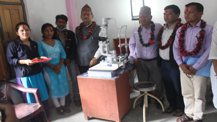 नगर प्रमुख डम्बर बहादुर रावतले रिभन काटेर उद्घाटन गरिएको प्राथमिक आँखा तथा कान उपचार केन्द्रलाई अष्ट्रलियन एड सिबीएमको आर्थिक सहयोगमा नेत्र ज्योति संघ सुर्खेतले १० लाख भन्दा बढिको सामाग्री र औषधि हस्तान्तरण गरेको छ । नेपाल नेत्र ज्योति संघद्धारा संचालित एकीकृत आँखा तथा कान स्वास्थ्य कार्यक्रमको कर्णाली प्रदेश व्यवस्थापक मान बहादुर कुँवरले नलगाड नगरपालिकाका प्रमुख डम्बर बहादुर रावतलाई सामाग्री र औषधि हस्तान्तरण गरेका थिए । आँखा तथा कान परीक्षण गर्न कार्यक्रमले नगरपालिकालाई १० लाख भन्दा बढिको ११ प्रकारका उपकरणहरु हस्तान्तरण गरिएको व्यवस्थापक कुँवरले जानकारी दिएका थिए ।