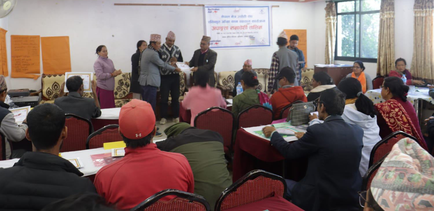 जाजरकोटको नलगाड र भेरी नगरपालिका, रुकुमपश्चिमको मुसीकोट र चौरजहारी नगरपालिका, सल्यानको बागचौर र शारदा नगरपालिकामा कार्यरत अपाङ्गताको क्षेत्रमा काम गर्ने संस्थाका प्रतिनीधिहरुलाई तीन दिने अपाङ्गता समावेशी बिकास तालिम दिएको नेपाल नेत्र ज्योति संघ, सुर्खेतका अपाङ्गता समावेशी अधिकृत सिर्जना नेपालीले जानकारी दिईन । यही चैत १२ गतेदेखि सुरु गरिएको तालिम १४ गते सम्पन्न भएको थियो । मुसीकोट नगरपालिकाका प्रमुख महेन्द्र केसीको प्रमुख आथित्यतामा उद्घाटन तथा समापन गरिएको तालिमका प्रशिक्षक मुकुन्द हरि दहाल रहेका थिए । तालिमको समापन कार्यक्रममा आफ्नो भनाई राख्दै मुसीकोट नगरपालिकाका प्रमुख केसीले आगामी दिनमा मुसीकोट नगरपालिकाले निर्माण गर्ने सबै भौतिक संरचनाहरुलाई अपाङ्गमैत्री बनाउने प्रतिबद्धता व्यक्त गरेका थिए । सहभागीहरुको अनुसासित र लगनशिलताले तालिमलाई पूर्ण सफलता बनाएको प्रशिक्षक दहालले भनाई राखेका थिए । अपाङ्गता समाबेशी अधिकृत नेपालीले तालिमको सहजीकरण लगाएतको अन्य सबै व्यवस्थापन गरेकी थिईन ।