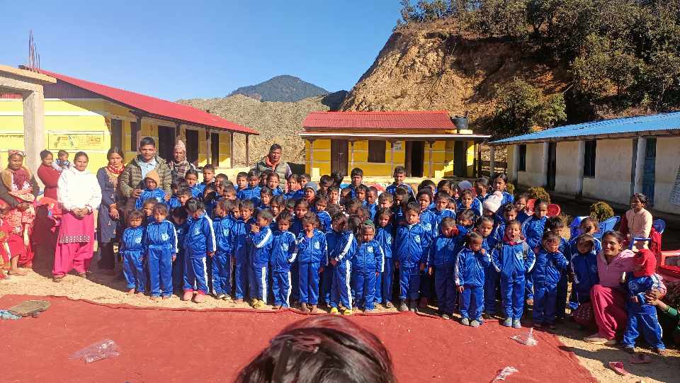 कर्णाली प्रदेश जापानले ३२४ जना भुकम्प पीडित विद्यार्थीलाइ ट्रयाक सुट वितरण