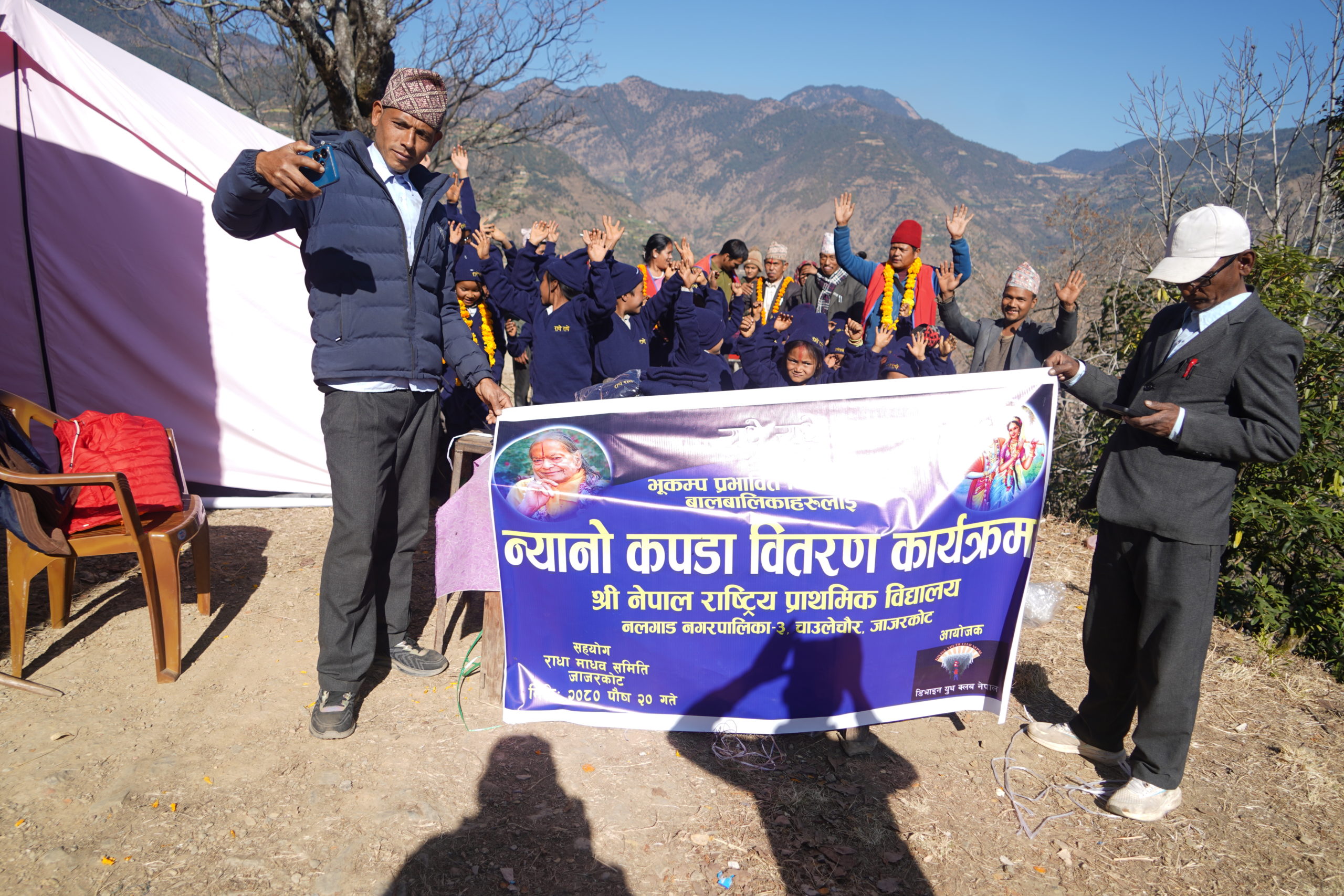 राधामाधव समिति, जाजरकोटले भुकम्प पीडित विद्यार्थीहरुलाई न्यानो कपडा वितरण गरेको छ । घरबास विहीन भएका नलगाड नगरपालिकाका विभिन्न स्कुलहरुमा अध्ययनरत विद्यार्थीहरुलाई समितिले न्यानो कपडा वितरण गरेको हो ।