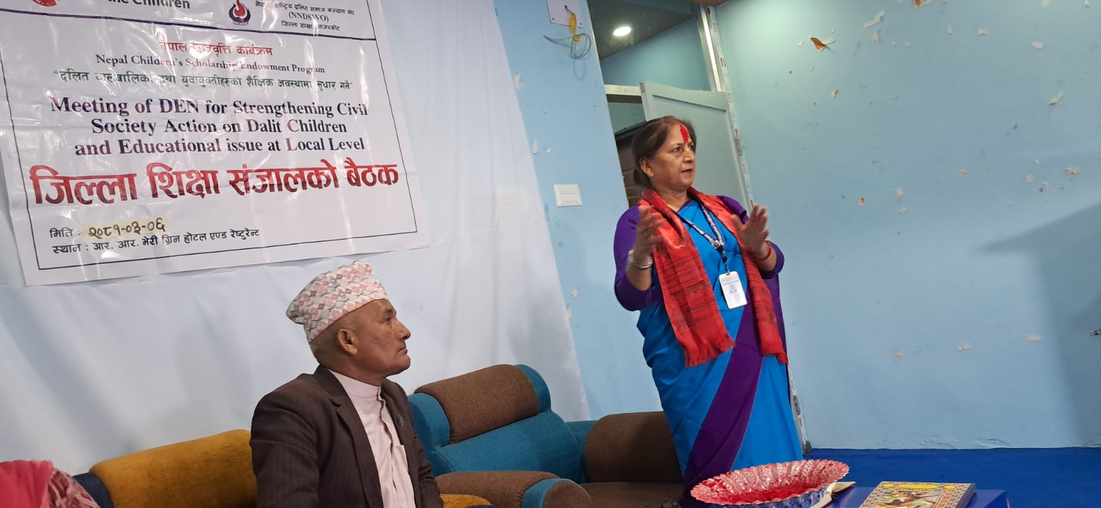 नेपाल राष्ट्रिय दलित समाज कल्याण संघ, जिल्ला शाखा जाजरकोटका उपाध्यक्ष रति नेपालीको अध्यक्षतामा सम्पन्न भएको जिल्ला शिक्षा संजालको समिक्षात्मक बैठकमा दलित बालबालिका तथा युवायुवतिहरुको शैक्षिक अबस्था सुधार गर्न नेपाल छात्रावृति वितरण कार्यक्रमले जाजरकोट जिल्लामा विगत १० बर्षदेखि संचालन गर्दै आएका कृयाकलापका विषयमा छलफल गरिएको थियो ।