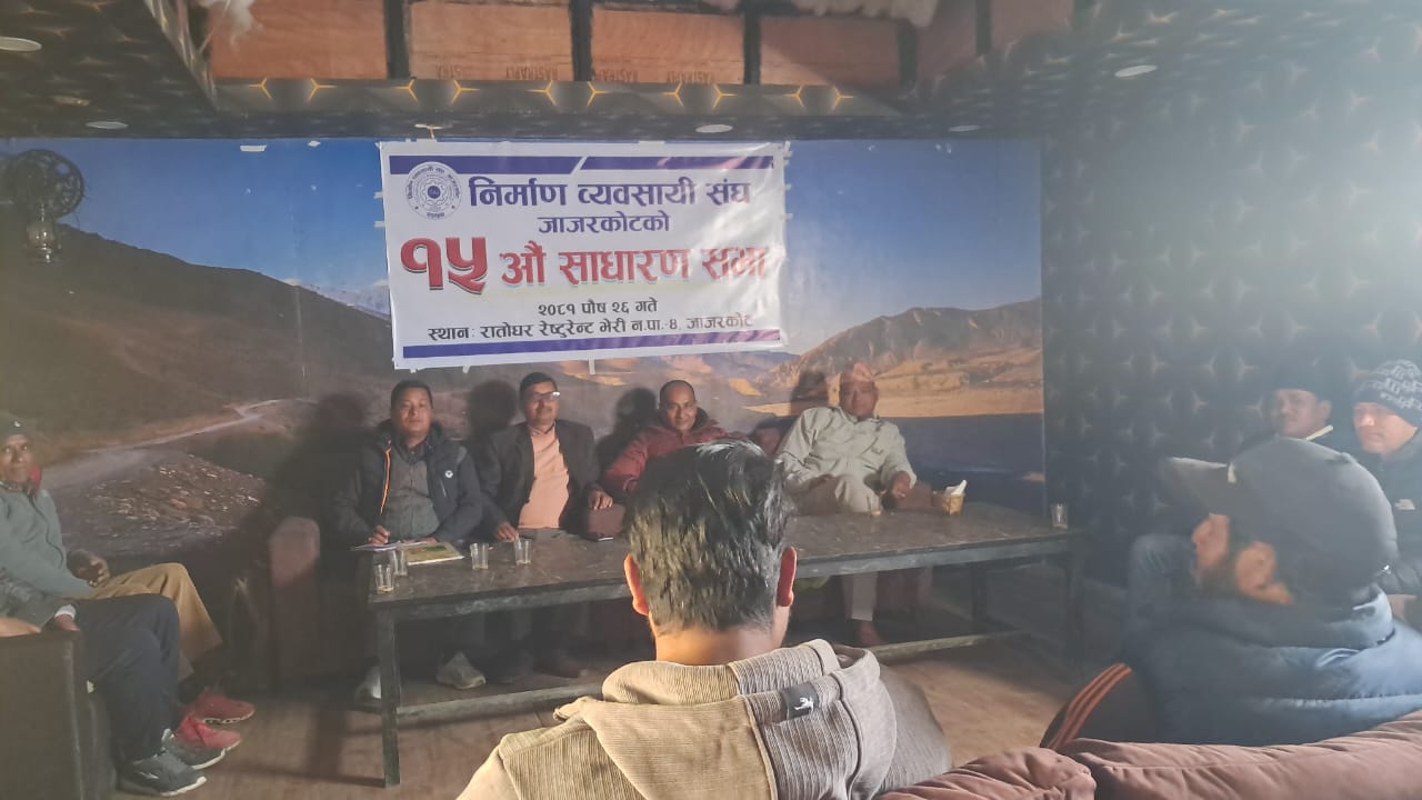 निर्माण व्यवसायी संघ, जाजरकोटको १५ औं बार्षिक साधारण सभा सम्पन्न भएको छ । जिल्ला सदरमुकाम खलंगामा शुक्रबार १५ औं बार्षिक साधारण सभा सम्पन्न भएको हो ।