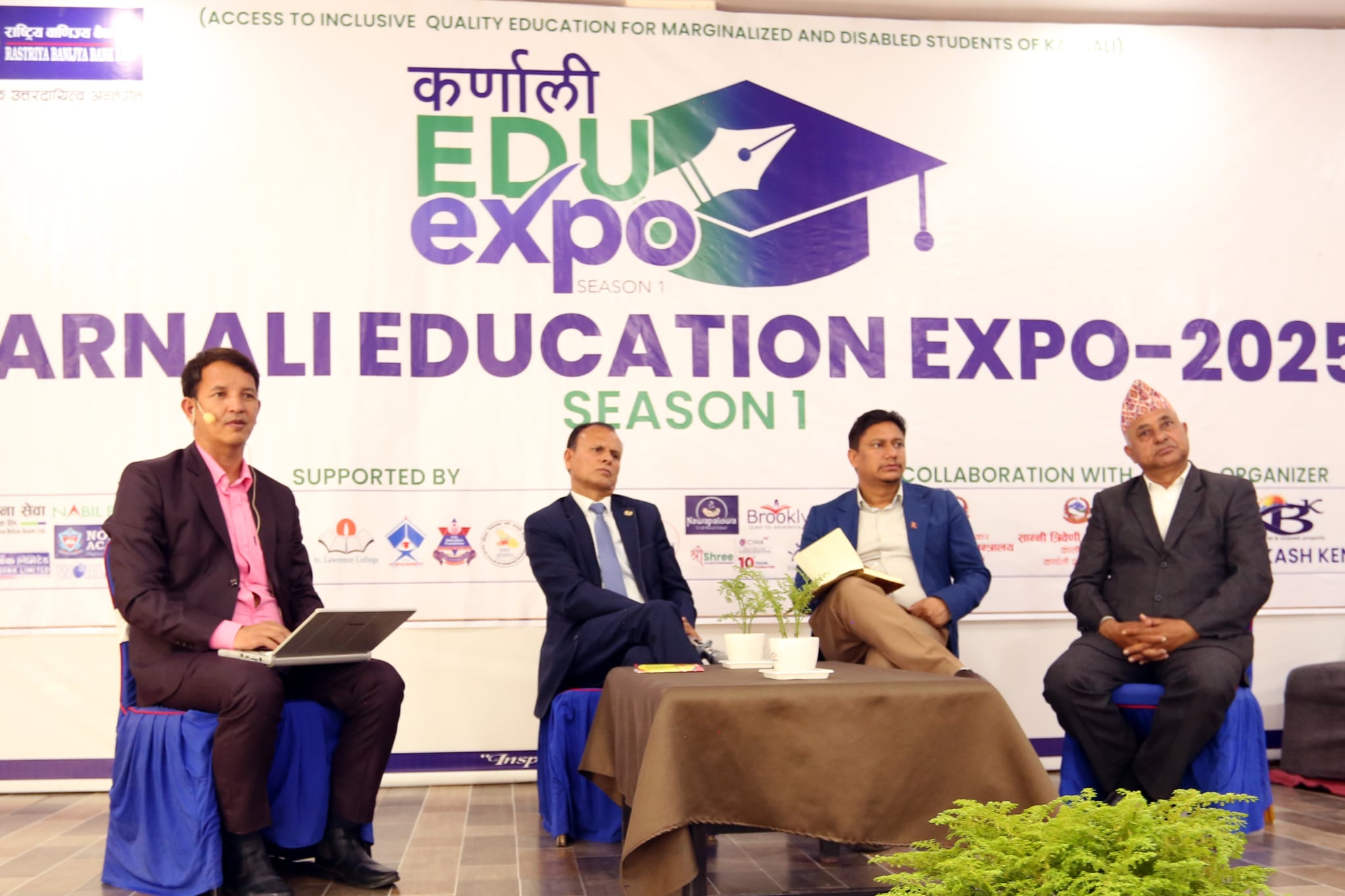 कार्यक्रममा उच्च शिक्षालय तथा माध्यमिक विद्यालय संघ नेपाल ९हिसान० का केन्द्रीय कोषाध्यक्ष नरेन्द्र भण्डारीले एक्स्पोको सफलताको शुभकामना दिँदै यस्ता बहसले गुणात्मक शिक्षाको पहुँच विस्तार गर्न सहयोग पुर्याउने विश्वास व्यक्त गरे । एक्स्पोको पहिलो दिन अब “कर्णाली जाग्छः शिक्षामा पनर्विचार, भविष्यको पुनर्निर्माण” शिर्षकमा बहस पनि सम्पन्न भएको छ । सो बहसमा विज्ञका रुपमा प्रा। डा नन्दबहादुर सिंह, कृषि शिक्षाका विज्ञ तथा कृषि अनुसन्धानकर्ता धनेश थापा, अभ्यासकर्ताका रुपमा श्री कृष्ण मावि इत्राम सुर्खेतका पूर्व प्रधानाध्यापक गेहेन्द्र दाहाल प्यानलिस्टका रुपमा रहेका थिए । उक्त सेसनको सहजीकरण बरिष्ठ पत्रकार प्रभात चलाउनेले गरेका थिए । अहिलेसम्म अभ्यास गरिएको शिक्षा प्रणालीलाई बदल्न कर्णाली अब जाग्नुपर्ने, कर्णालीवासीको जीवनस्तर उकास्न प्रत्यक्ष सहयोग पुग्ने शिक्षा पाठ्यक्रमा समावेश गर्नुपर्ने र नेपाली भाषा, साहित्यको उदगम थलो प्राकृतिक, सांस्कृतिक रुपमा सम्पन्न कर्णालीको समृद्ध भविष्य पुनर्निर्माण गर्नुपर्नेबारे उक्त शत्रमा छलफल भएको थियो । परम्परागत शैक्षिक अभ्यासमाथि बहस गर्नु सान्दर्भिक छ कि छैन भन्ने प्रश्नबाट सुरु भएको शत्र छलफल केमा गर्ने, चुनौतीहरु के छन्, निर्धारित पाठ्यक्रम कतिको उपलब्धिपूर्ण छ, शिक्षा बदल्न के गर्नुपर्छ, कसरी सम्भव छ र कर्णालीले कस्तो किसिमको शिक्षा प्रणाली र पाठ्यक्रम अभ्यास गर्नुपर्छ भन्ने विषयमा गहन छलफल भएको थियो ।