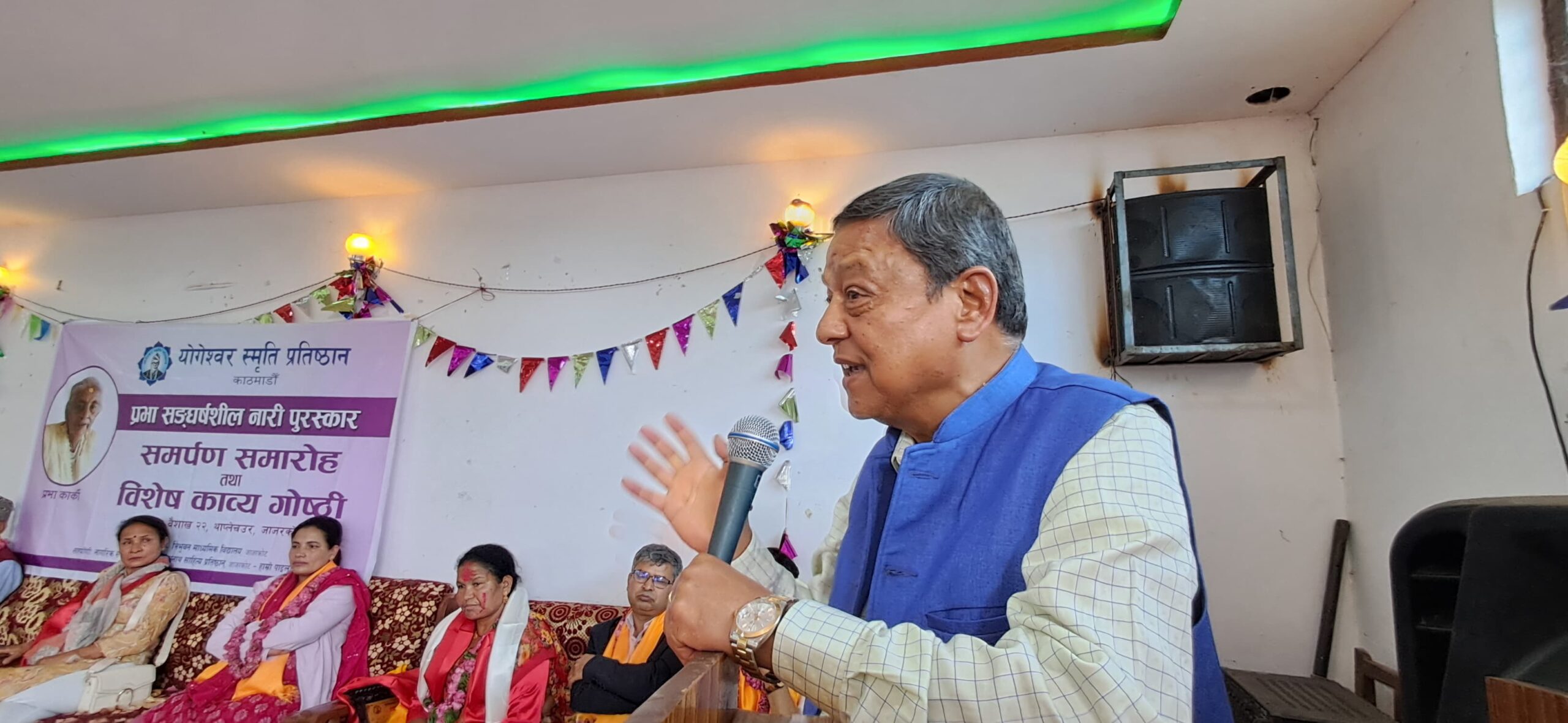 प्रभा संघर्षशिल नारी पुरस्कारको औचित्य तथा उदेश्यकाबारेमा योगेश्वर स्मृति प्रतिष्ठानका अध्यक्ष एवं कवि राजेश्वर कार्कीले प्रकास पारेका थिए भने, पुरस्कृत देवी नेपालीको व्यक्तित्वको परिचयात्मक मन्तव्य नागरिक समाजका संयोजक राजेन्द्र विक्रम शाहले राखेका थिए । प्रभा संघर्षशिल नारी पुरस्कार समर्पण तथा विशेष काव्य गोष्ठीका विषयमा विशेष चर्चा कार्यक्रमका प्रमुख अतिथि कोइरालाले गरेका थिए भने, संविधान सभा सदस्य रावल, नगर प्रमुख घर्ती र उपप्रमुख जैसीले कार्यक्रमले पारेको सकारात्मक प्रभावका विषयमा आ–आफ्नो राखेका थिए ।