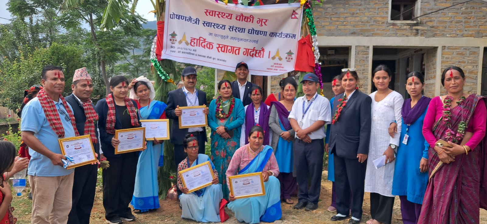 भेरी नगरपालिकाले सुरु गरेको मावन विकासको अभियानलाइ वडाले कार्यान्वयन गर्ने सन्दर्भमा पोषणमैत्री स्वास्थ्य चौकी घोषणा गर्न सफल भएको ९ नम्बर वडाका वडाअध्यक्ष हिरा प्रसाद शर्माले भनाइ राखेका थिए । बालमैत्री वडा घोषणा अभियानलाइ अगाडी बढाएको जानकारी दिदै वडा अध्यक्ष शर्माले बालमैत्री वडाका सुचकहरु पुरा गर्न पोषणमैत्री स्वास्थ्य चौकी घोषणा गर्नुको साथै वडा घोषण प्रक्रियालाइ अगाडी बढाएको बताए ।