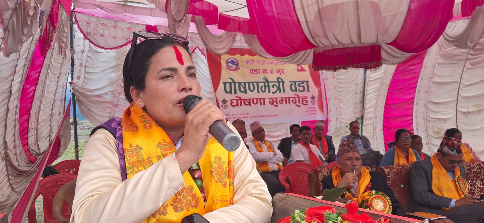 शारिरिक, मानसिक तथा बौद्धिक विकासका लागि काब्रोहाइड्रेट, प्रोटिन, भिटामिन, खनिज जस्ता पोषण तत्वहरुको आबश्यक पर्ने बताउदै भेरी नगरपालिकाका उप–प्रमुख सिता जैसीले बालबालिकाहरुको बृद्धि विकासका लागि ९ नम्बर वडाले स्वास्थ्य क्षेत्रका सम्पूर्ण सुचकहरु पुरा गरेर पोषणमैत्री वडा घोषणा हुन सफल भएको बताइन् ।