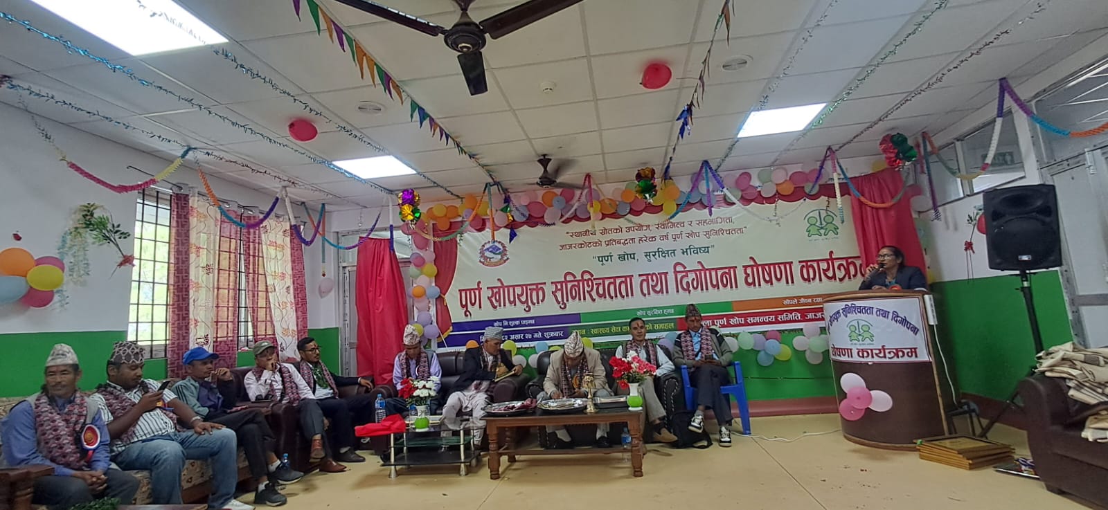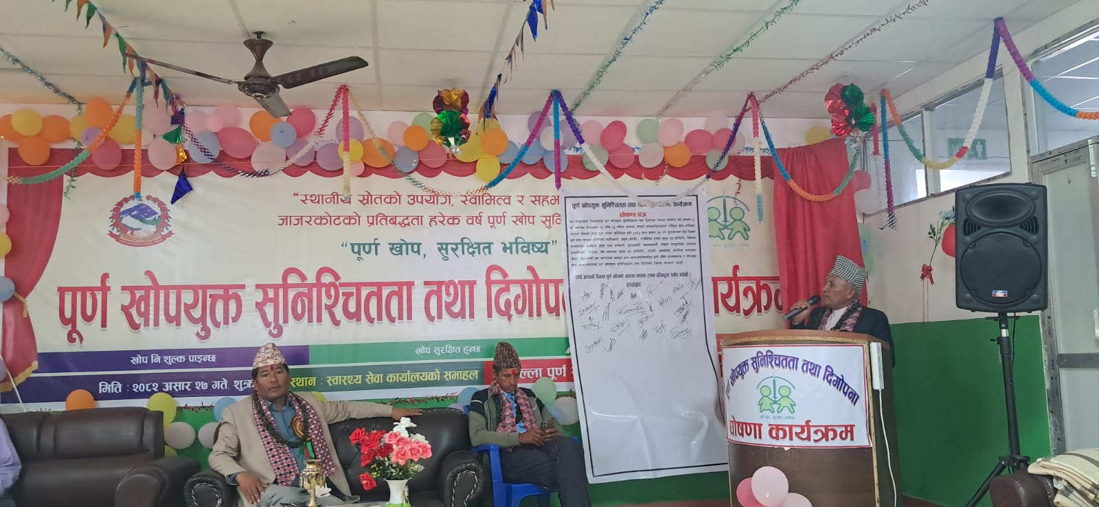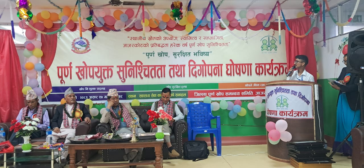 कार्यक्रमका अध्यक्ष खत्रीले घोषणा–पत्र पढेर जाजरकोट जिल्लालाइ पूर्ण खोपयुक्त सुनिश्चितता तथा दिगोपना घोषणा गरेका थिए ।